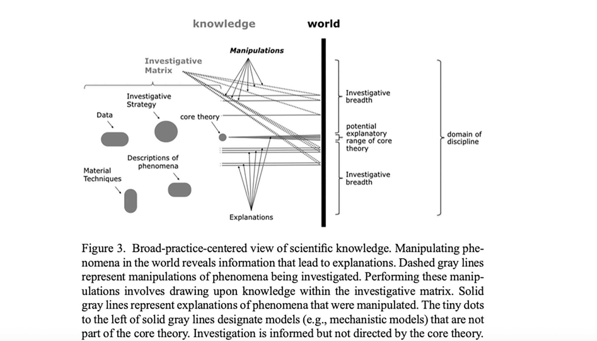 According to Waters core theory informs these investigations, but it does not dictate them; instead, explanations emerge from the interaction between theoretical commitments and practical engagements with phenomena. This view also resonates strongly with Fisher’s critique of the tool–science metaphor in GIScience. Just as GIS applications are not mere implementations of pre-existing theory, scientific knowledge more broadly is generated through cycles of experimentation, critique, and refinement rather than linear application of theory to the world. Practices lead to revisions of GISystems and spatial concepts as researchers work to make sense of complicated geographic phenomena.